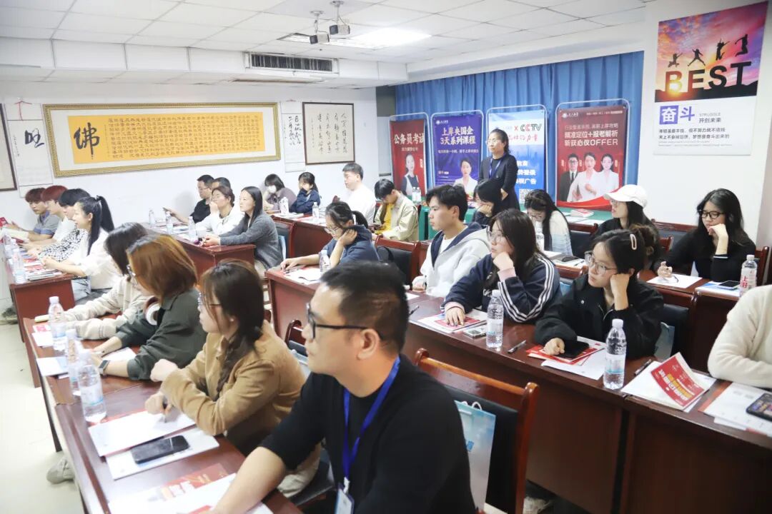 讲座中,谢总围绕六大核心要点,为现场参会者清晰梳理央国企上岸思路、答疑解惑。重点讲解了如何打破央国企求职信息壁垒、不同专业对应的央国企适配岗位、上岸央国企的核心优势,同时针对大学生普遍面临的考公、考研与央国企上岸的选择难题给出理性建议,详细拆解42天上岸央国企的核心流程,并为26至29届不同年级学生制定了个性化的上岸规划,帮助参会者明确求职方向、理清备考思路。