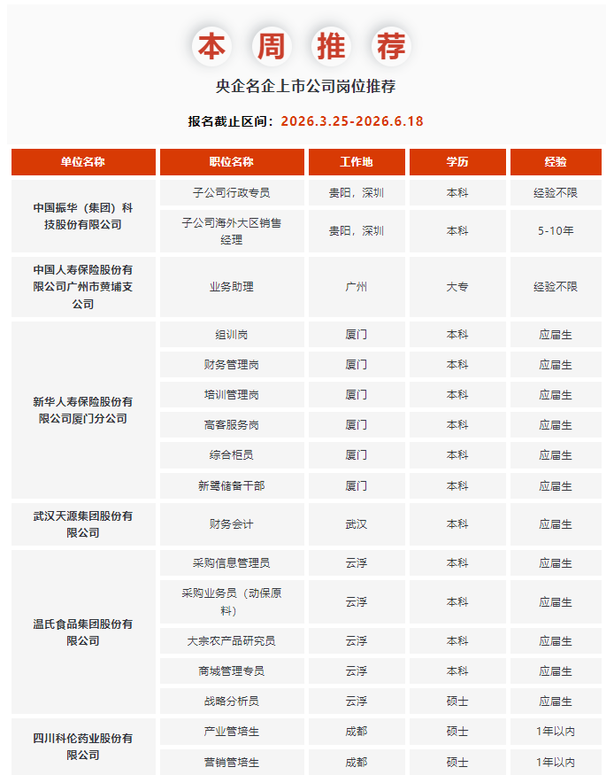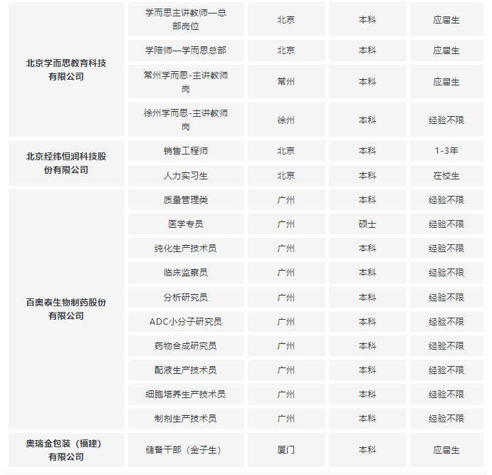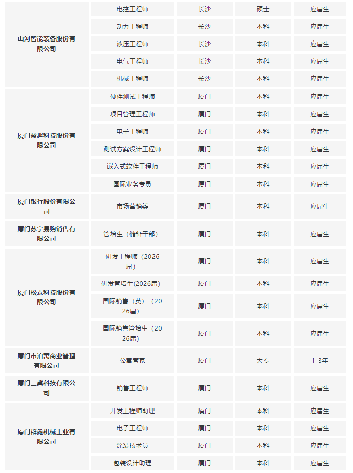 不知道都有哪些企业开放春招