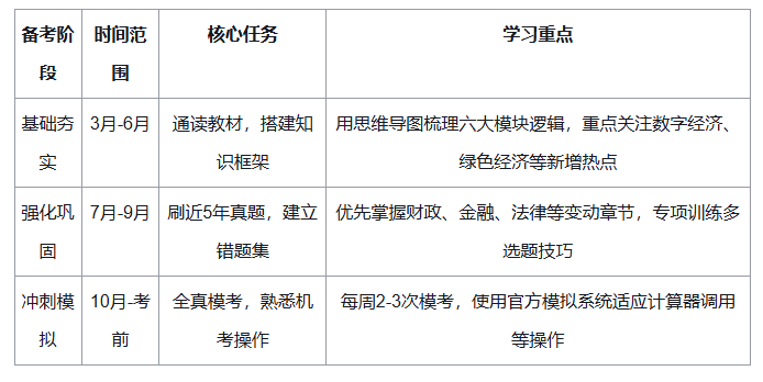 涵盖经济学基础、财政、货币金融、统计、会计、法律六大模块,考点分布均衡。