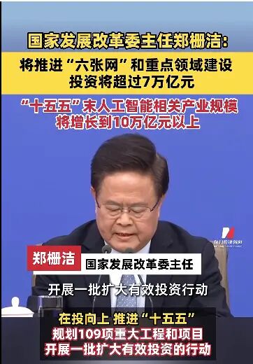 国家发改委主任在记者会上明确表示,2026年将在 “六张网”新基建项目和重点领域投入超过7万亿元。这“六张网”具体包括:水网、电网、算力网、新型通信网、城市地下管网、物流网。