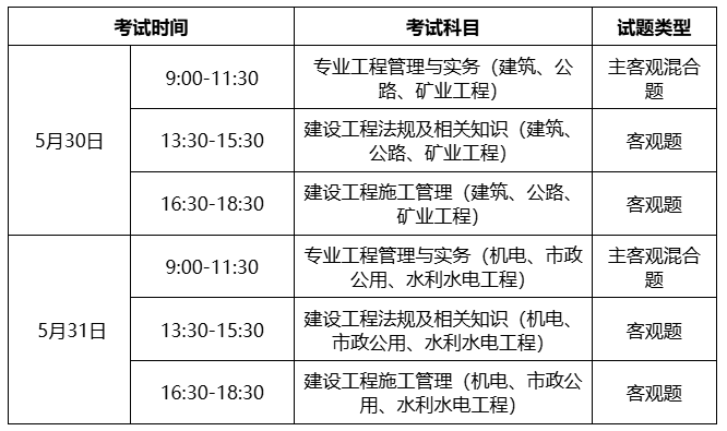 2026年二级建造师考试时间定于5月30日、31日举行,《建设工程法规及相关知识》和《建设工程施工管理》考试时间为2小时,《专业工程管理与实务》考试时间为2个半小时。