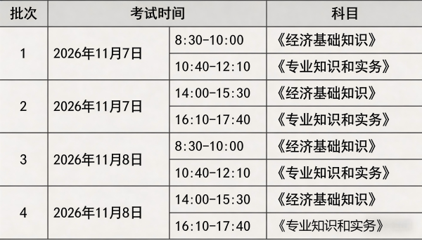根据人社部最新通知,2026年中级经济师考试时间和科目安排如下,所有考生均需在一天内考完两科,连续作答,中途不休息。