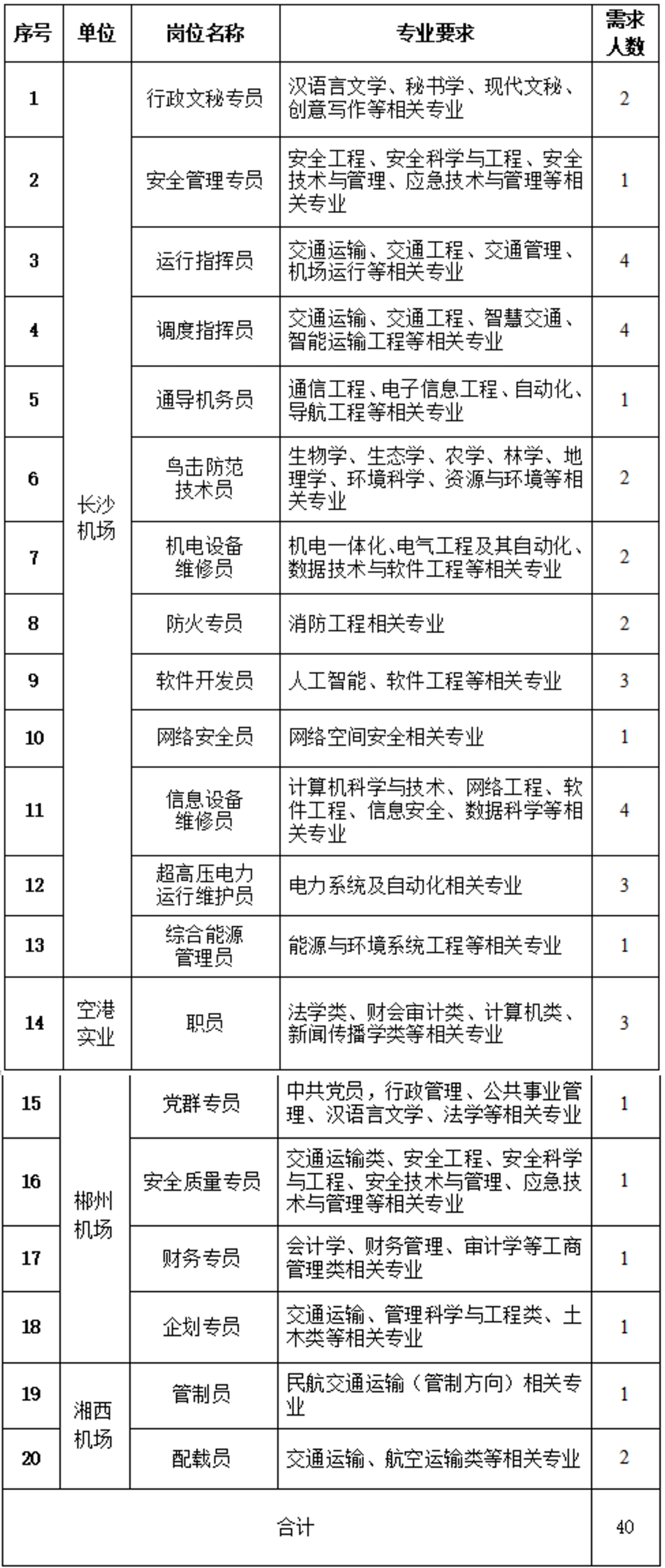 湖南机场2026年春季校园招聘公告已经正式发布了,共招40人,需要全日制大学本科及以上应届毕业生,招聘流程包含了发布公告→现场面试→考察审定→体检与背景调查→公示→录用,具体内容已经整理好了,速速来看看吧。