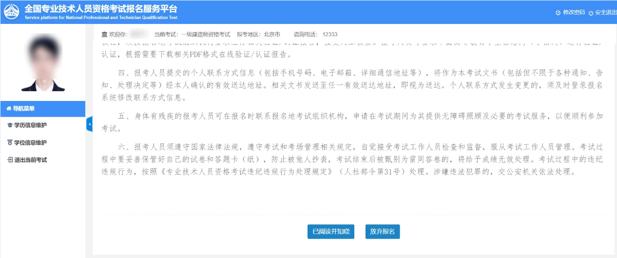 第六步:阅读报考须知,并点击“已阅读并知晓”。