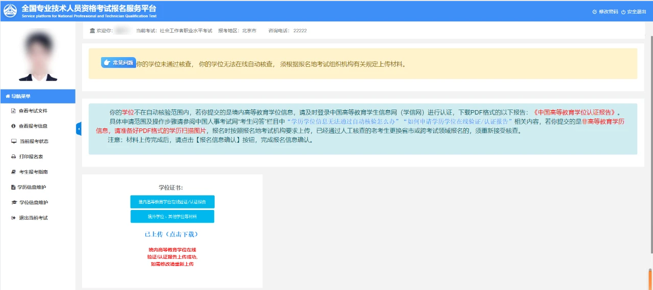 注意:已经通过人工核查的老考生,若更换省市或跨考试领域报名,需要重新接受核查。