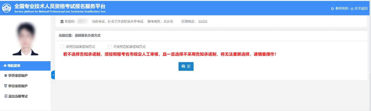 告知承诺制较为简单,建议选择这种方式。选择后无法进行修改,请谨慎操作。