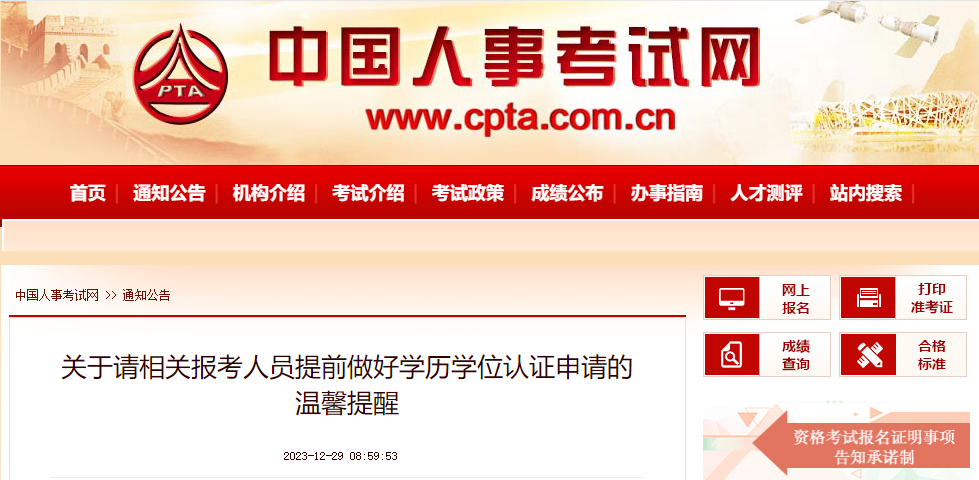 因学历学位认证需要一定办理周期,在学历学位认证申请范围内的报考人员应尽早登录中国高等教育学生信息网(学信网)申请认证报告。