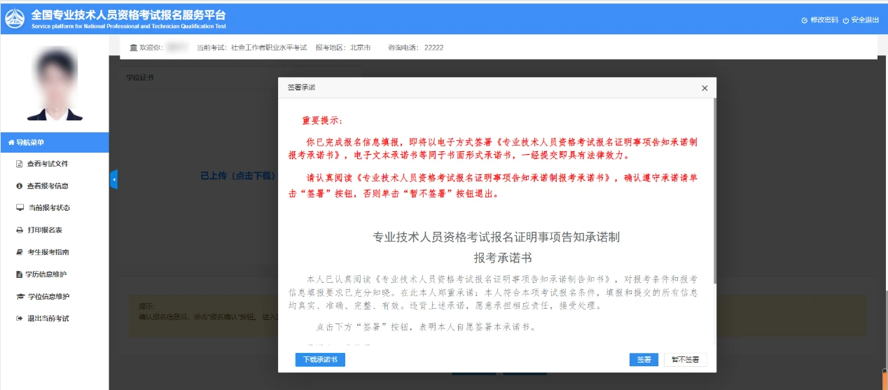 报考人员如需按报名地考试机构要求上传相关证明材料查,报名信息确认时会跳转到证明材料上传页面,如下图所示: