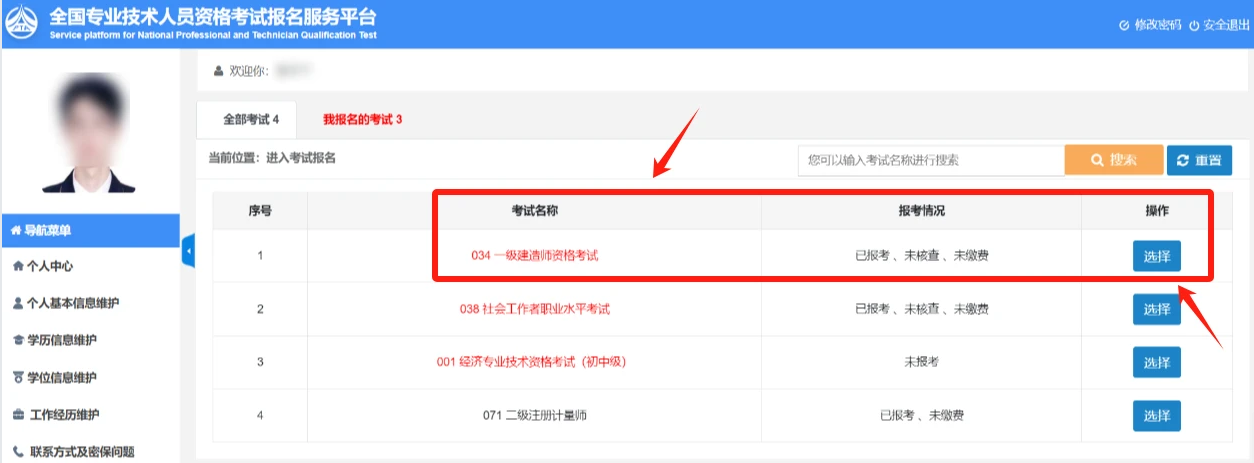 添加学历信息,完善工作经历,完善联系方式。待到“账号信息完整度”为100%时才可进入考试报名。