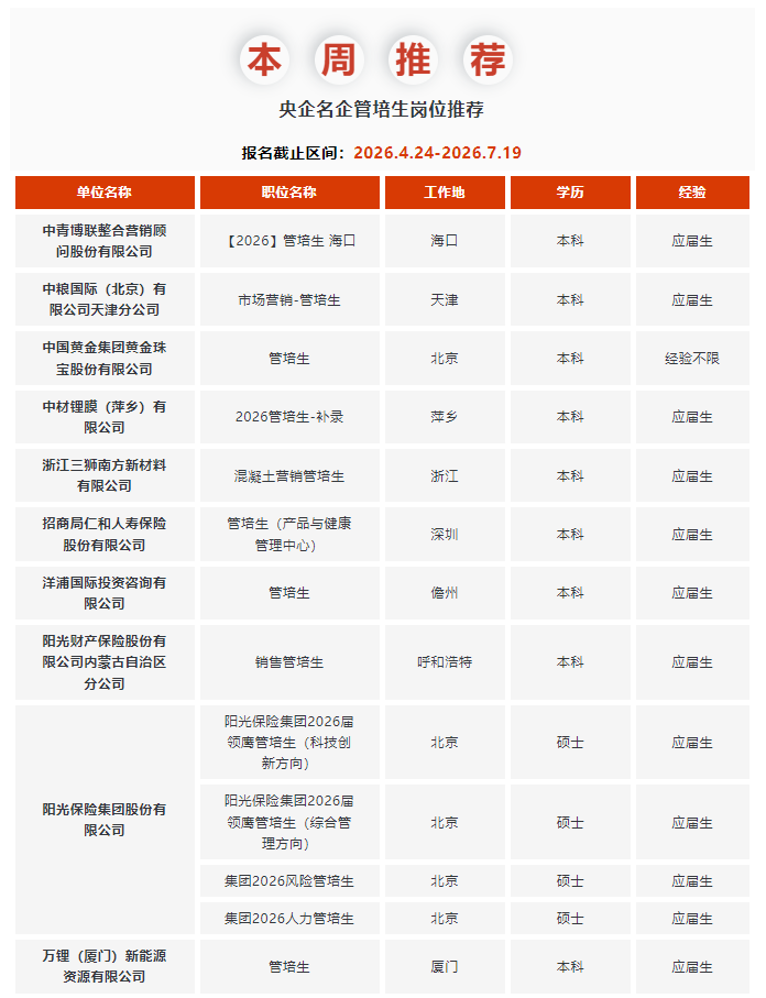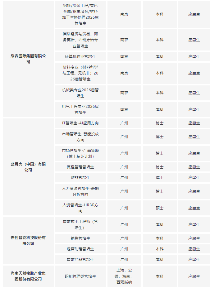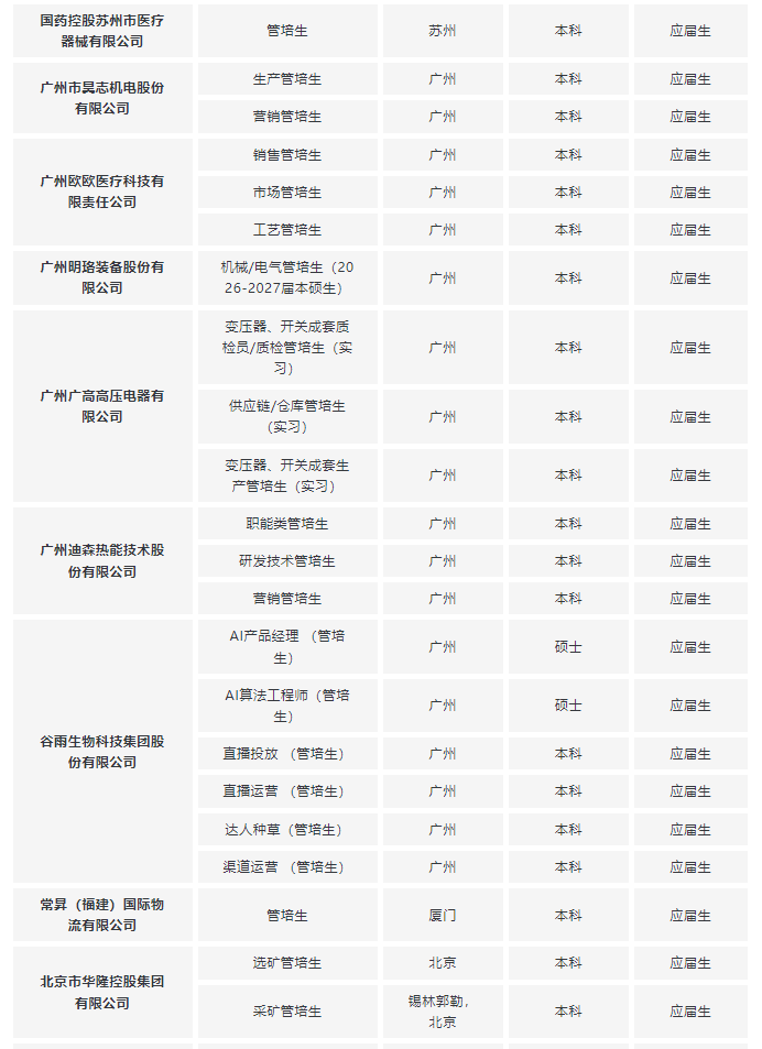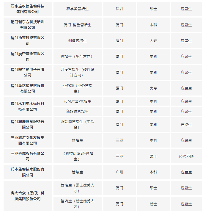 不知道都有哪些企业开放春招