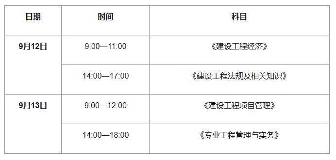2026年一级建造师考试时间安排在9月12日至13日,为期两天。具体时间安排如下: