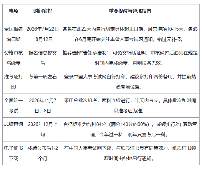 2026年中级经济师考试的所有重要节点均已由官方发布。掌握以下时间表,能让你从容不迫地走完从报名到领证的全过程。
