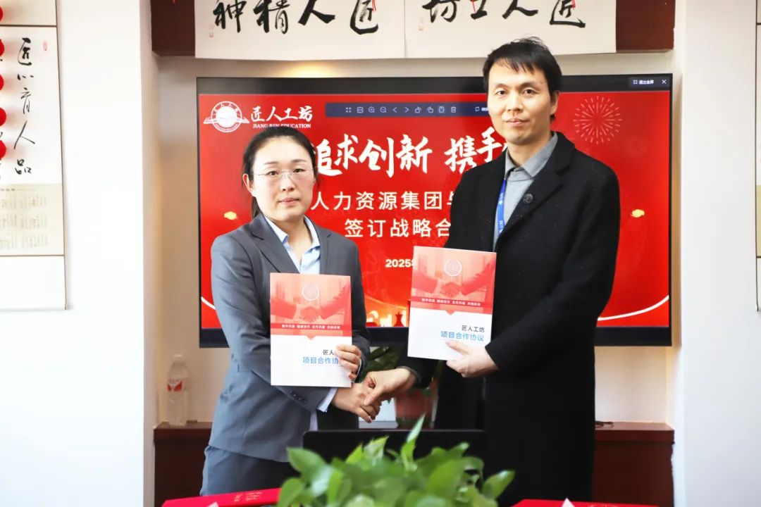 在座谈会的热烈氛围中,双方领导就未来的合作方向进行了深入探讨,并达成共识。他们一致认为,双方可以在课程开发、学员实训、就业推荐等方面开展深度合作,共同打造职业教育与人力资源服务的全新模式。随后,在匠人工坊内,双方正式签署了战略合作协议,标志着这一合作迈出了实质性的一步。