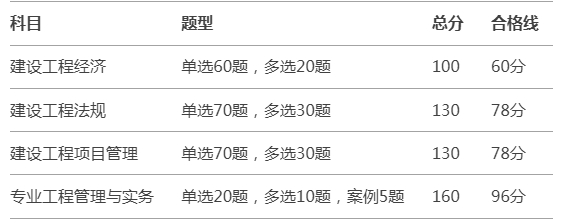 一级建造师考试共设 4个科目,分 公共科目 和 专业科目 两类: