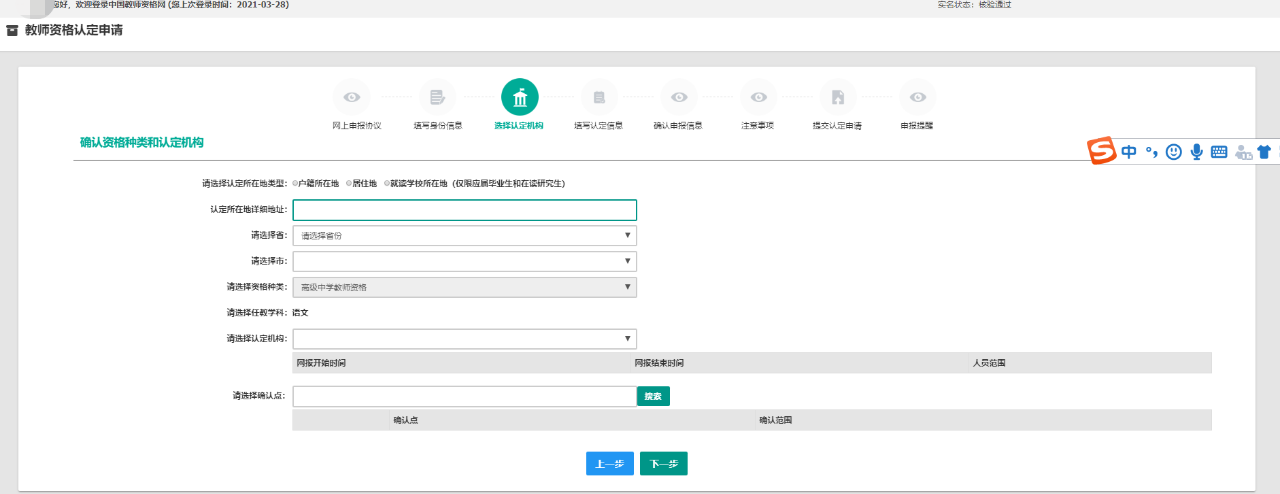 选择确定自己的认定机构,小伙伴一定要再三确认信息无误,认定学段也会影响到认定机构!