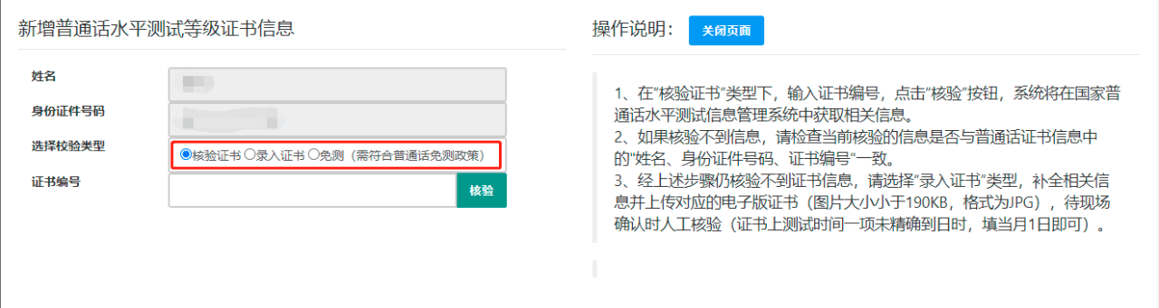 选择校验类型,如果能够核验证书,就只需要填入证书编号了