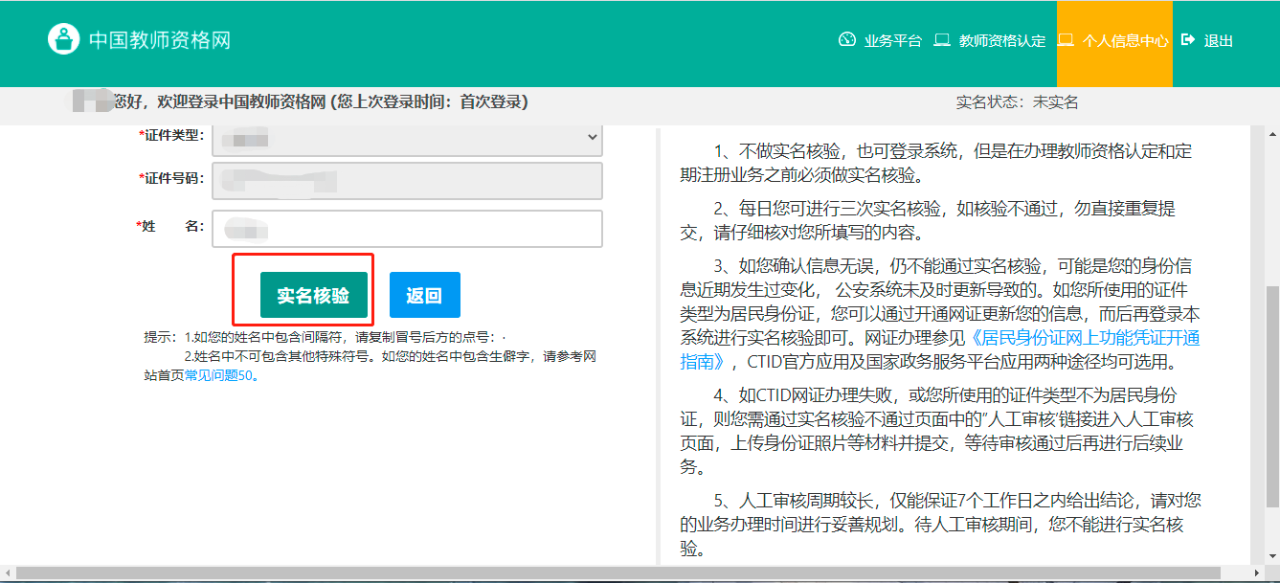 二、进行实名核验: