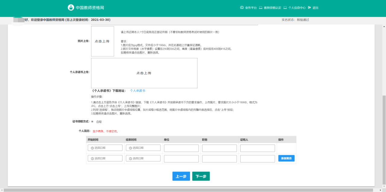 2.可提前进行账号注册,完成实名核验,完善个人信息中心的各项信息。已通过系统核验的证书,不再提交证明材料。