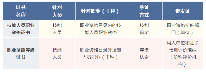 职业资格证书和职业技能等级证书