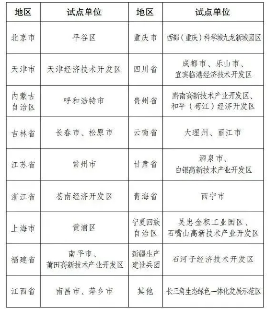 第二批国家碳达峰试点名单