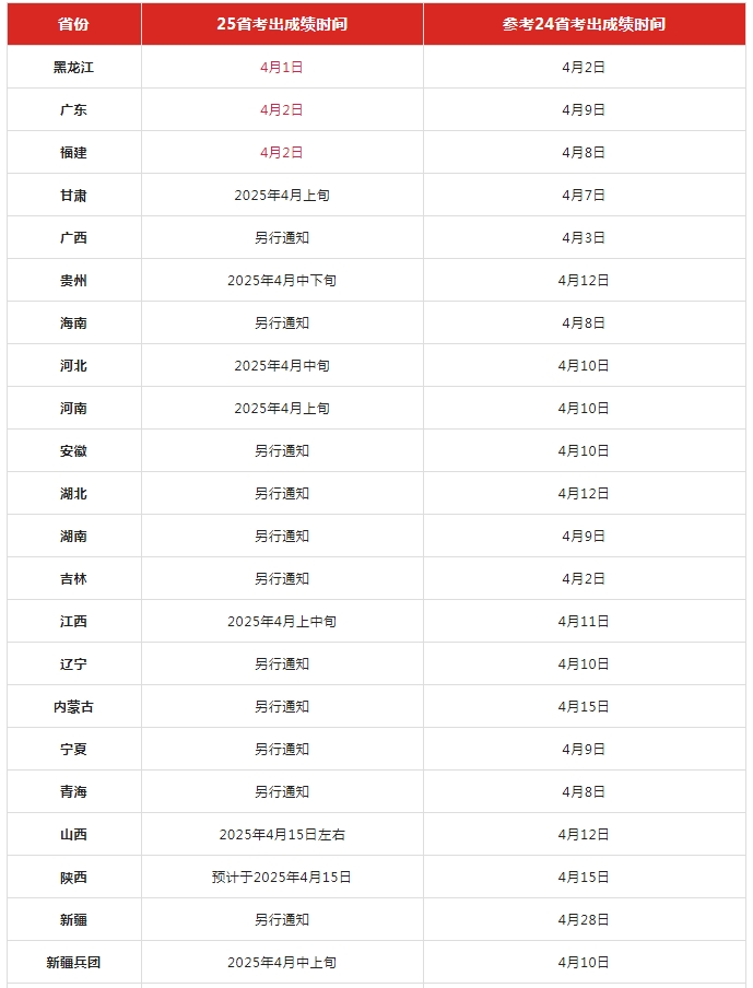 目前已知明确出成绩时间的省份包括