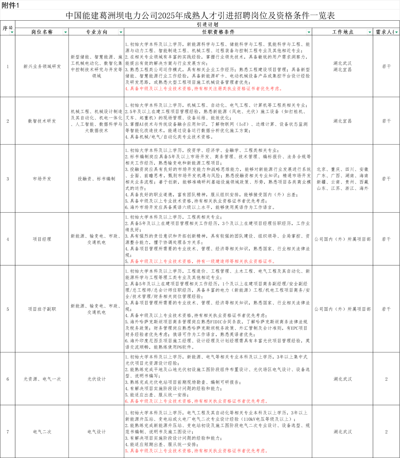 附件1:中国能建葛洲坝电力公司2025年成熟人才引进招聘岗位及资格条件一览表.xlsx
