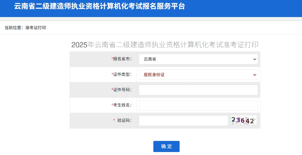 2025年云南二建准考证打印入口已经开通!