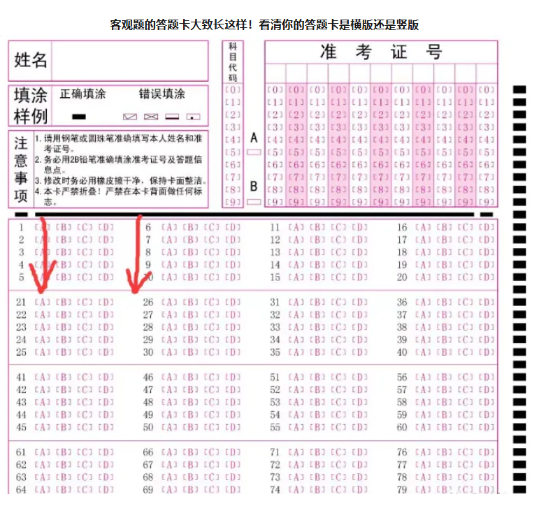 6.看清你的答题卡是横版还是竖版,可能上午和下午的答题卡版面就不同,所以一定要看清是横版还是竖版,千万别填错了。