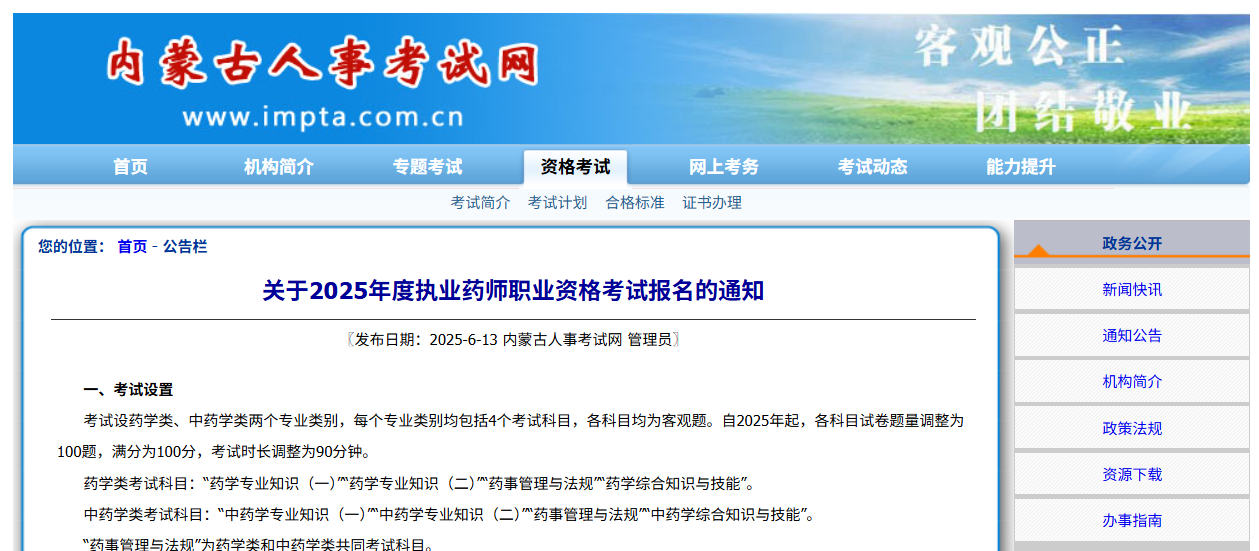 2025年度执业药师职业资格考试统一实行网上报名,网址:https://zg.cpta.com.cn/examfront。