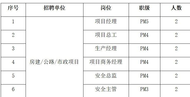2)有2年以上生产经理岗位工作经历,或任职期间至少有独立负责一个完整项目的工作经验,有房建、公路、市政等项目管理经验;