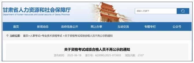 根据人社部人事考试中心资格考试考务规范化专项工作的要求,我省自2025年起,不再对考前自动核验通过和已人工核查通过审核的合格人员进行公示。