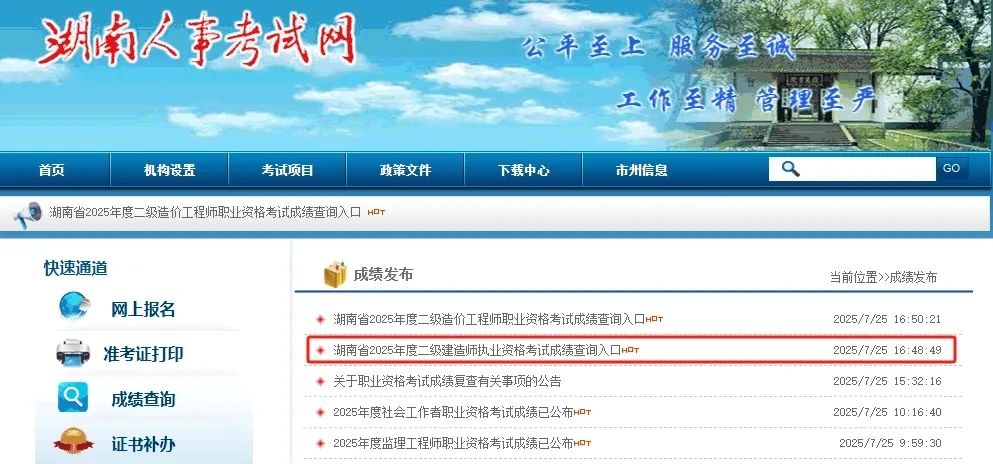2025年湖南二建合格标准暂未公布。 可参考2024年合格标准:全部科目均为60分。 2025年各地二建成绩查询 一、浙江 合格标准: 管理60法规60实务72 查询网址: http://zg.zjks.com:90/examfrontM1/score/query_new.htm 二、甘肃 合格标准: 管理52法规53建筑55市政61水利62其他60 查询网址: https://gansu.nomax.vip/tip/stdlogin.do?method=fwdLoginPage 三、江苏 合格标准: 管理60法规60实务72 查询网址: https://rs.jshrss.jiangsu.gov.cn/hot/second-constr-cjcx/searchInfo2025R9BN07.html 四、云南 合格标准: 管理52法规45实务主项49实务增项68 查询网址: https://ynjzjgcx.com/scores-query 五、广西 合格标准: 管理60法规60实务72 查询网址: http://sjzg.cpta.com.cn:82/examfront/score/initializeCX.htm 六、安徽 合格标准: 管理60法规60实务72 查询网址: http://www.apta.gov.cn/ProfTech_ExamScore/ScoreLogin?eid=1355 七、天津 合格标准: 待公布,参考历年分数线管理60法规60实务72 查询网址: http://47.99.242.51/tip/stdlogin.do?method=fwdLoginPage 八、陕西 合格标准: 管理60法规60实务60 查询网址: https://kskw.sjzz.org.cn/cjcx/index.aspx 九、山西 合格标准: 管理50法规50实务61 查询网址: http://39.97.9.165:8089/ej2025/30434/userhtml/user_cjcx.html 十、海南 合格标准: 管理60法规60建筑72水利市政65其他60 查询网址: http://118.31.224.114/tip/stdlogin.do?method=fwdLoginPage 十一、贵州 合格标准为:管理60分,法规60分,实务72分。 查询网址:http://gzwb.oumacloud.com:8003/gzwb 十二:上海 2025年合格分数线: 建设工程施工管理60分、建设工程法规及相关知识60分、专业工程管理与实务72分。 查询网址: https://sh.appms.cn/KaoSheng/84567/userhtml/any_cjcx.html 十三:重庆 合格标准具体如下:法规60分合格、管理60分合格、实务各专业均为72分合格。 查询网址:https://sl.pidiqi.com/NfqAfy 十四:福建 合格标准均为各科目试卷满分的60%,即:建设工程施工管理60分、建设工程法规及相关知识60分、专业工程管理与实务72分。 查成绩网址:http://fjrsks.ks365.org/login 十五:河北 合格标准: 《建设工程施工管理》50分、《建设工程法规及相关知识》50分、《专业工程管理与实务》62分。 查分链接: https://ejjzs.hebpta.com.cn:8056/login?code=109