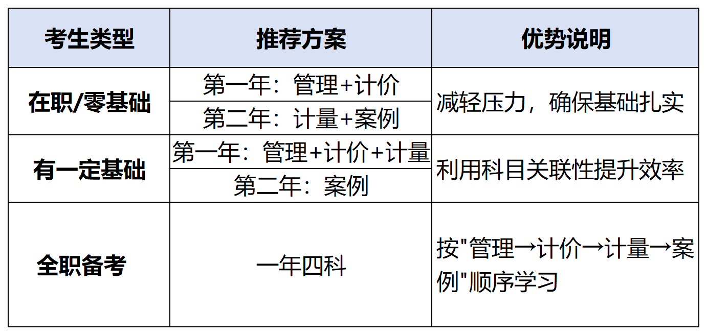根据时间和基础差异,可选择不同报考策略: