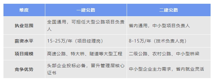 双证搭配:二建保底,一建冲刺(执业时仅注册一个)。