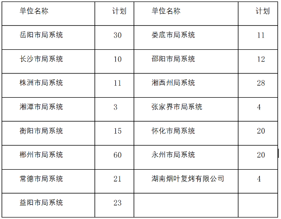 本次272人的招聘计划在全省范围内合理分配,覆盖岳阳、长沙、株洲、衡阳、郴州等多个市州局系统及湖南烟叶复烤有限公司。从招录名额来看,地域分布呈现重点突出的特点,其中郴州市局系统招录名额最多,达到60人;湘西州局系统和益阳市局系统紧随其后,分别招录28人和23人;岳阳市局系统招录30人,常德市局系统招录21人,怀化、永州两市局系统各招录20人。长沙、株洲、邵阳等市州局系统及湖南烟叶复烤有限公司也均有相应名额释放,满足不同地域求职者的就业需求。具体计划如下: