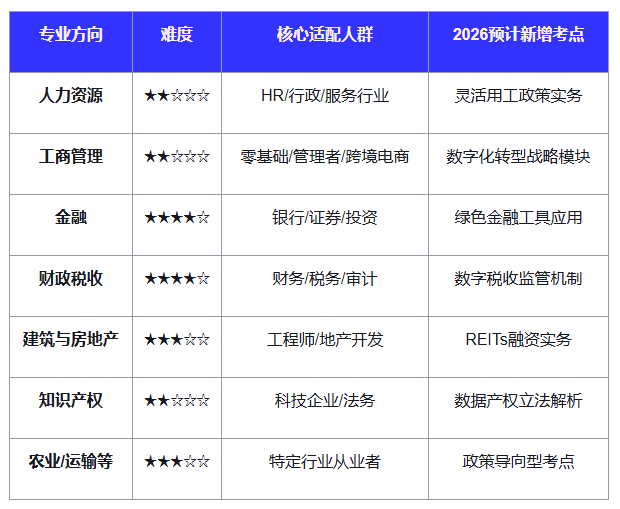 2026年新增考点预警:财税、金融专业新增“数字税收”“绿色金融”模块,分值占比约15%,需重点关注。