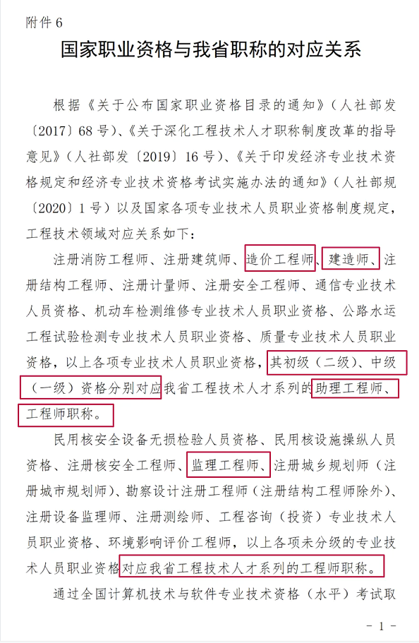 职业资格对应职称