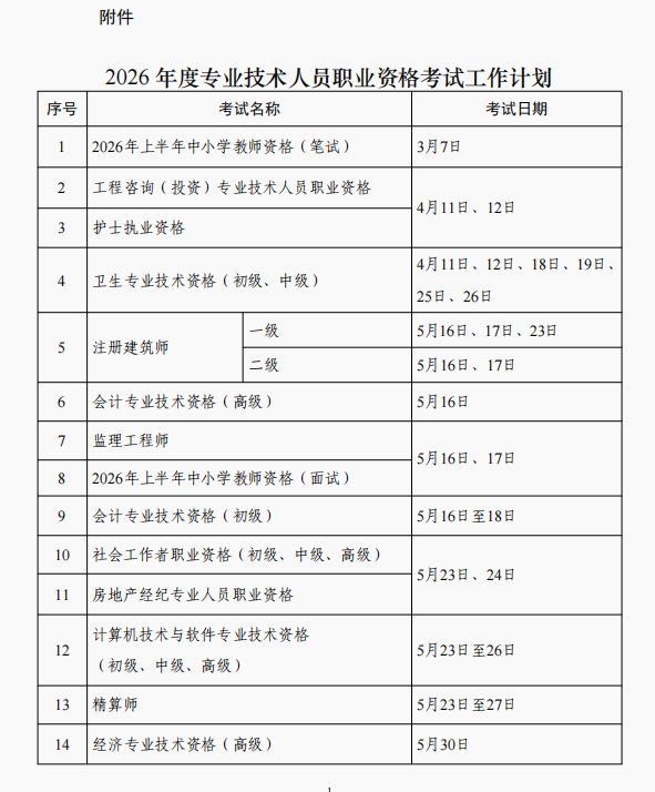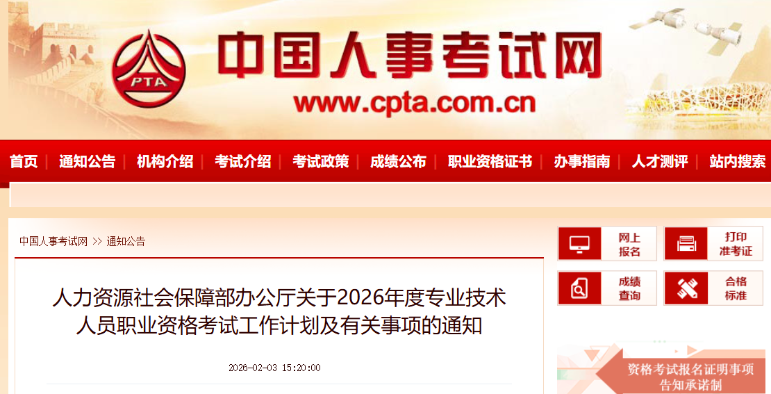 2月3日,人力资源社会保障部办公厅正式发布了“2026年度专业技术人员职业资格考试工作计划及有关事项的通知”。给马年的第一个月增添了些许躁动。
