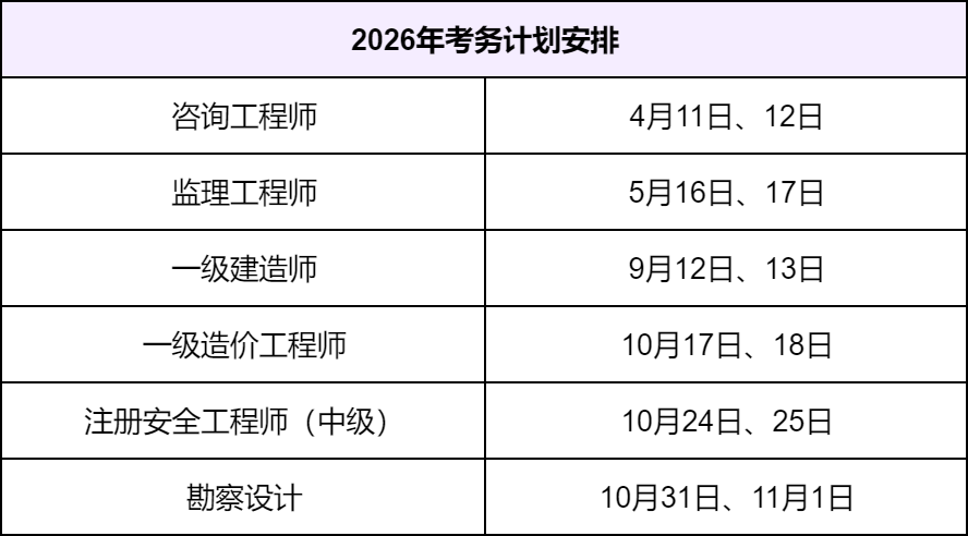 另外说明,二建考试日期不在2026年度的考试计划里,由各省发布。