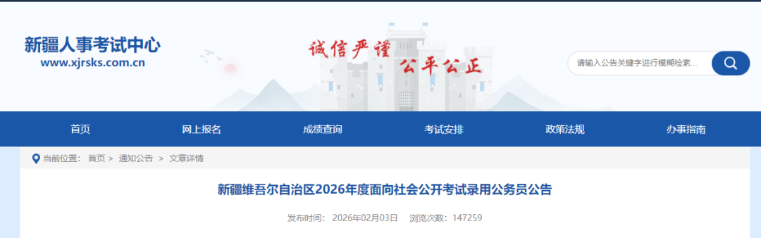 2026新疆公务员考试公告正式发布
