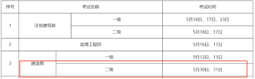 根据陕西省住房和城乡建设厅综合服务中心《2026年度陕西省建设类职业资格考试计划》的通知,2026年陕西二级建造师考试时间是5月30日、31号!