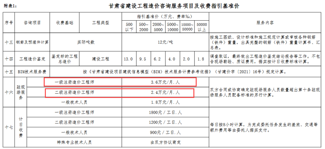 甘肃省建设工程造价咨询服务项目及收费指引(试行)通知发布,其中,对造价工程师收费指引基准价进行了详细规定,一级造价工程师3.6万/月、二级造价工程师2.4万/月。以下是通知详情: