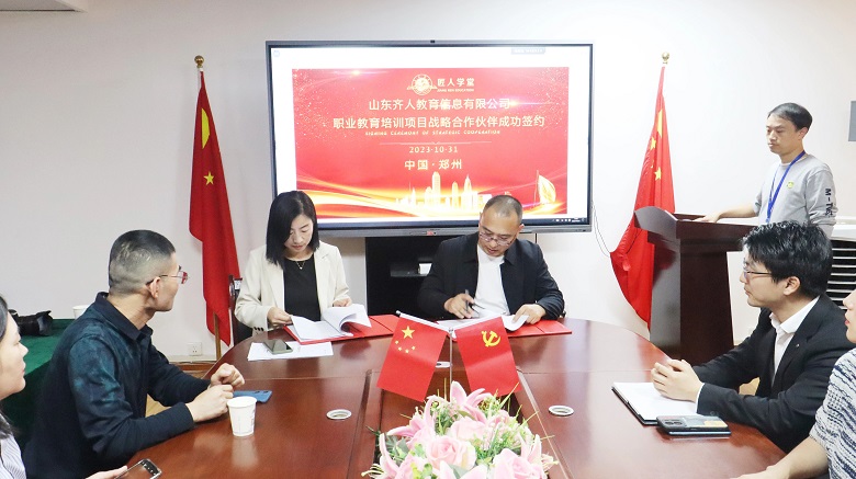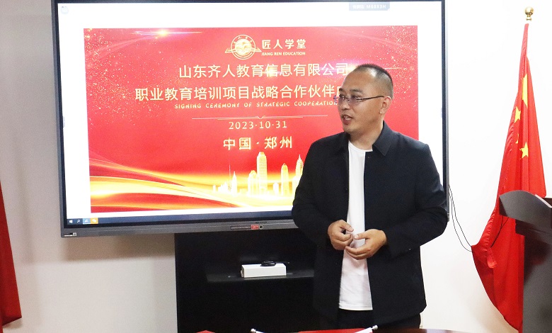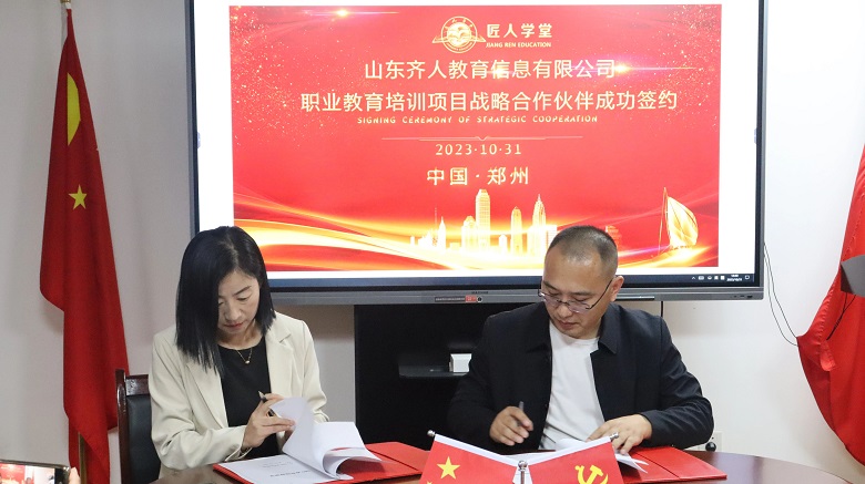仪式上,匠人教育集团董事长潘胜旺与山东齐人教育刘主任签署了战略合作书。双方就职业教育培训项目战略合作坦诚地交换了意见,并展望了后期合作的美好发展远景。