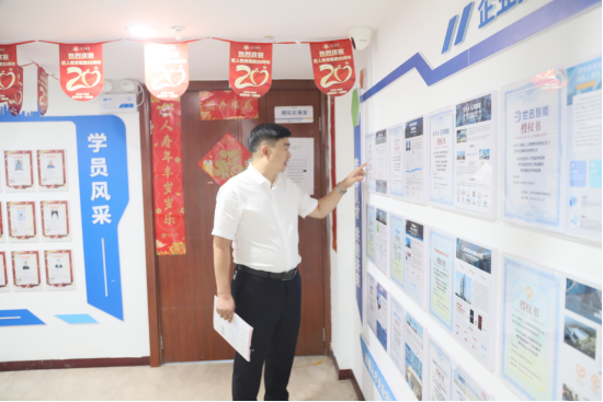 考察团一行参观了匠人集团的教学实训基地,侯应霞校长现场演示了集团自主研发的智能化培训平台,并介绍了“理论+实操+就业”一体化人才培养模式。考察团成员对匠人集团在产教融合、技术创新方面的成果给予充分肯定,并就具体合作细节与相关负责人进行了深入探讨。