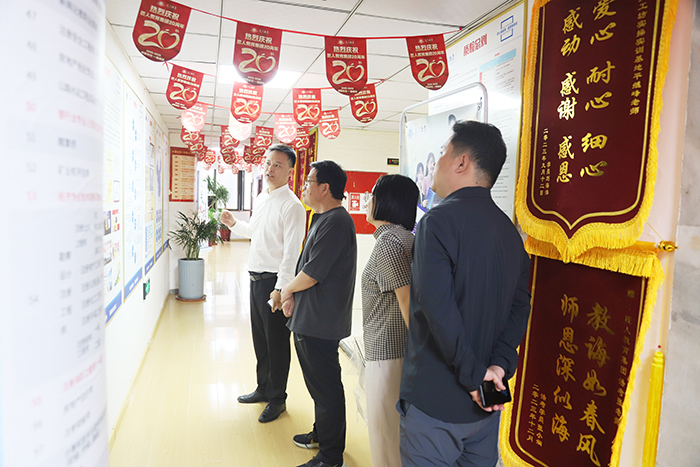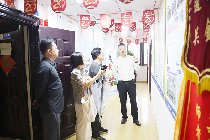在企业文化长廊,考察团通过图文展板了解到匠人教育在企业培训业务板块的发展历程及强大实力,对集团将企业党建工作与业务发展深度融合的做法给予肯定。参观过程中,琚校长不时驻足询问,就企业培训的课程设计逻辑、学员反馈收集等问题与吴总展开深入交流,双方围绕如何提升企业党建培训的实效性展开初步探讨。