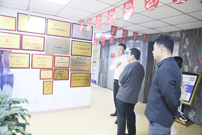 在匠人教育集团企培事业部总监吴永程的陪同下,琚校长一行参观了集团的办公区域及企业文化长廊。考察团仔细查看了匠人教育近年来开展企业培训尤其是党建培训的工作成果,了解了集团如何为企业党员提供灵活便捷的学习渠道,满足不同企业的个性化培训需求。
