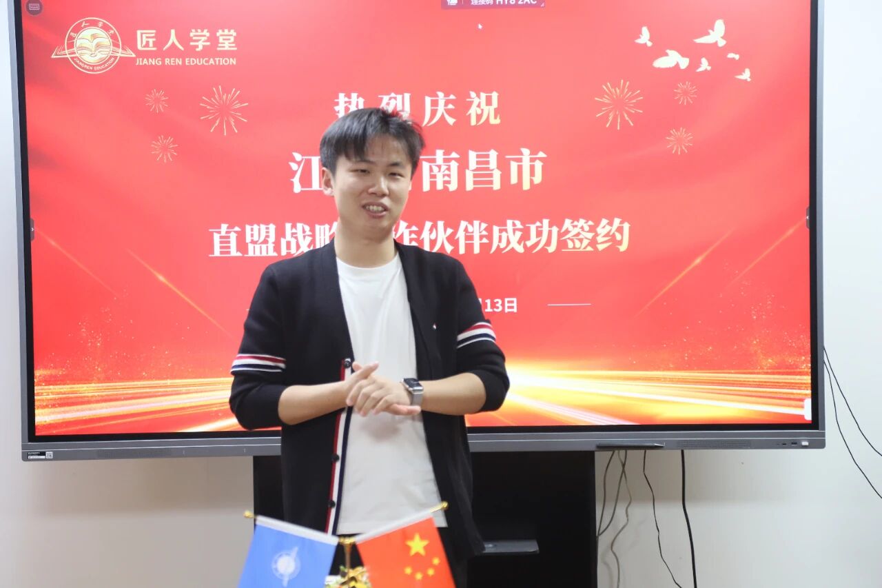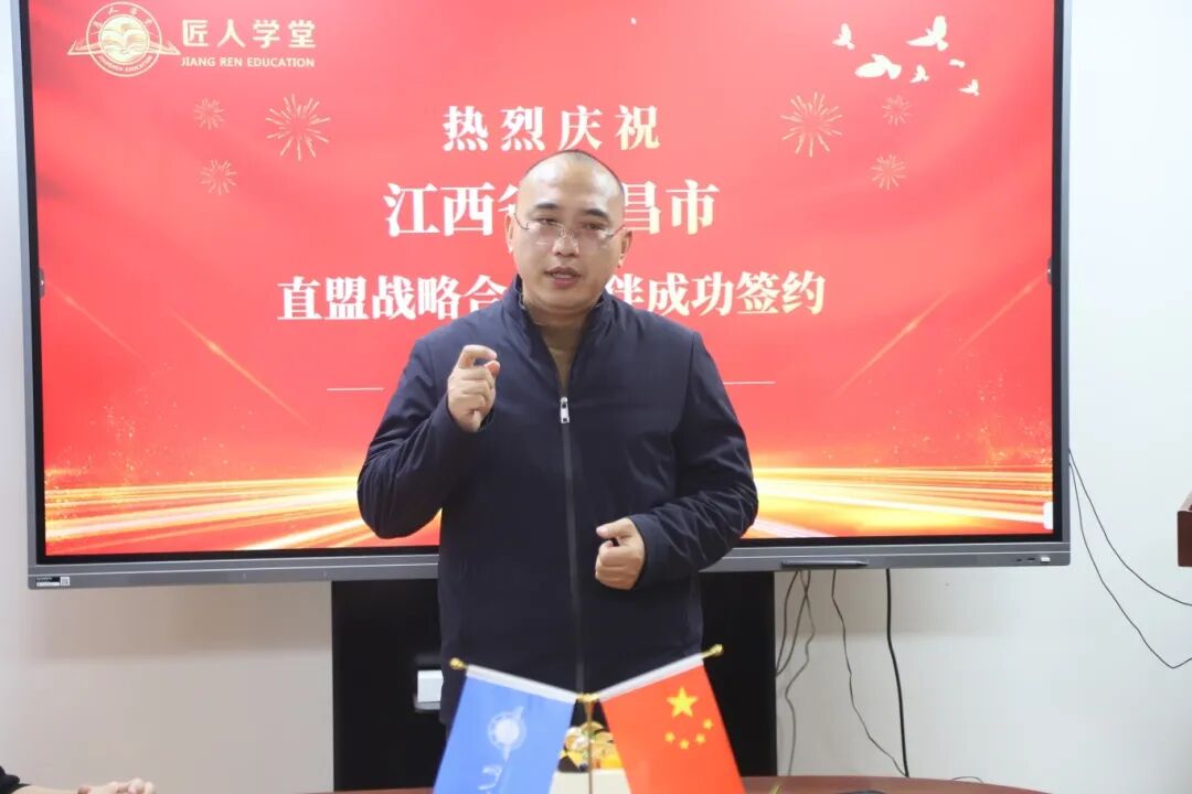 11月13日下午,匠人教育集团与江西南昌直盟战略合作伙伴签约仪式在郑州成功举办!匠人教育集团董事长兼总经理潘胜旺、集团各部门负责人、南昌合作伙伴路总等领导出席签约仪式。