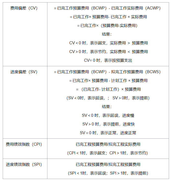 (2)挣值法的四个评价指标【24年单】