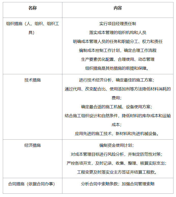 (3)施工成本纠偏措施