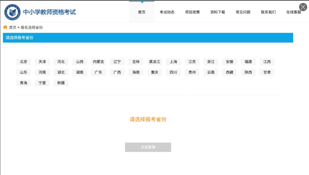 第二步:进入报名系统后,选择自己省份点“点击登录”进行下一步。